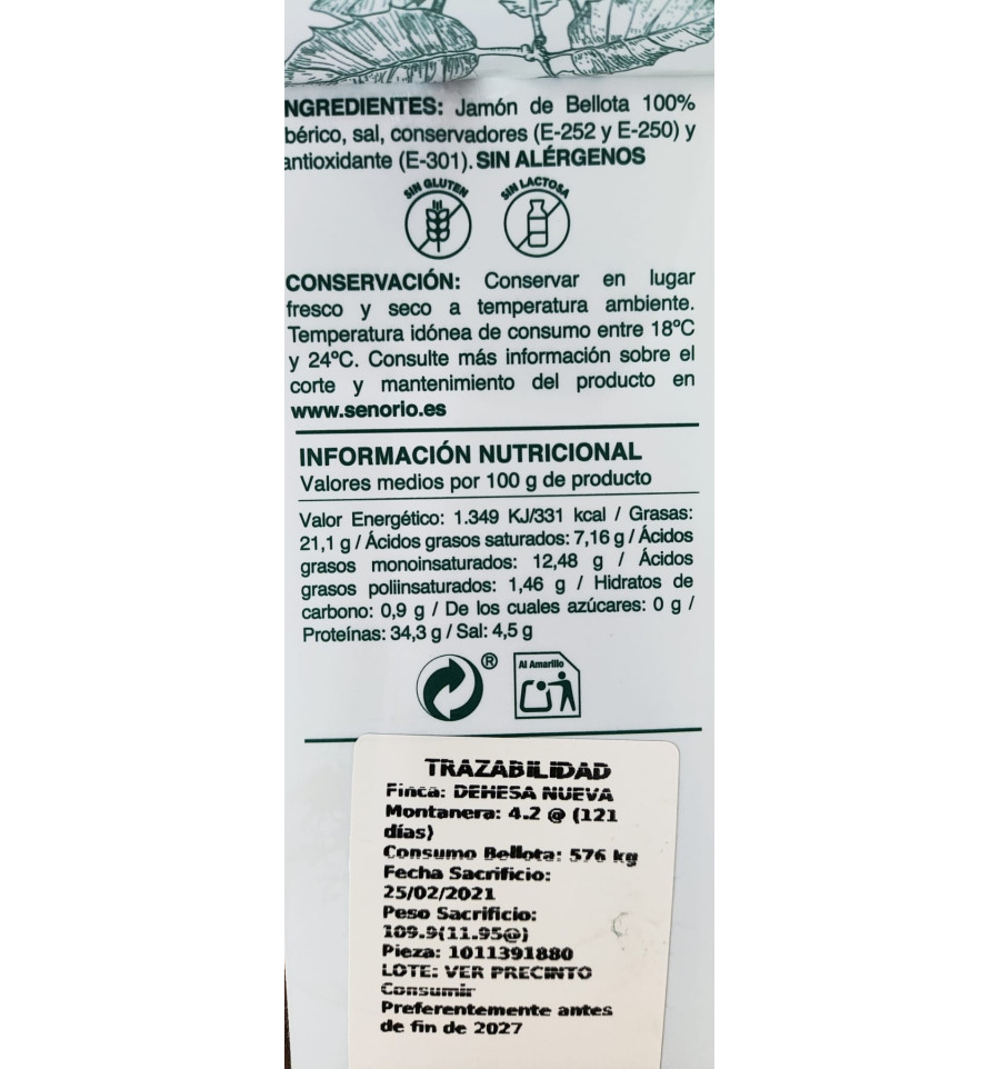 Jamón de Bellota 100% Ibérico D.O. Señorío de Montanera